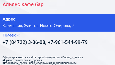 Альянс, кафе-бар по адресу Калмыкия, Элиста, Номто Очирова, 5 в дальнейшем Организация, размещена в следующих категориях: