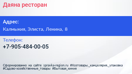 Даяна, ресторан по адресу Калмыкия, Элиста, Ленина, 8 в дальнейшем Организация, размещена в следующих категориях: