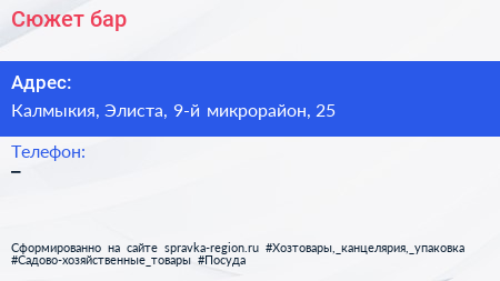 Сюжет, бар по адресу Калмыкия, Элиста, 9-й микрорайон, 25 в дальнейшем Организация, размещена в следующих категориях: