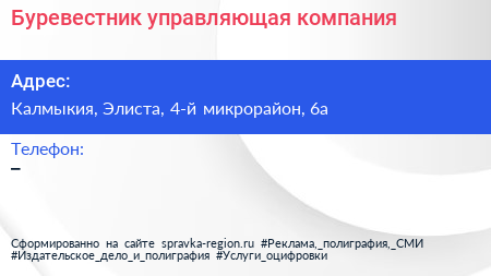 Буревестник, управляющая компания по адресу Калмыкия, Элиста, 4-й микрорайон, 6а в дальнейшем Организация, размещена в следующих категориях:
