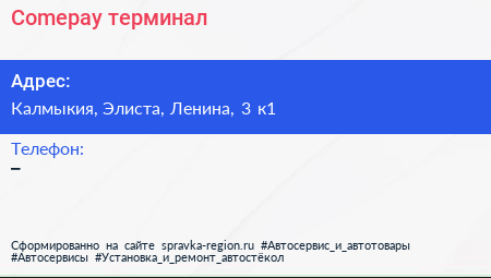 Comepay, терминал по адресу Калмыкия, Элиста, Ленина, 3 к1 в дальнейшем Организация, размещена в следующих категориях: