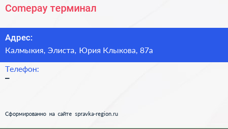 Comepay, терминал по адресу Калмыкия, Элиста, Юрия Клыкова, 87а в дальнейшем Организация, размещена в следующих категориях: