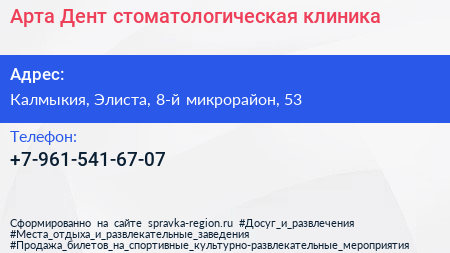 Арта Дент, стоматологическая клиника по адресу Калмыкия, Элиста, 8-й микрорайон, 53 в дальнейшем Организация, размещена в следующих категориях:
