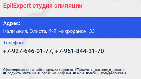 EpilExpert, студия эпиляции по адресу Калмыкия, Элиста, 9-й микрорайон, 33 в дальнейшем Организация, размещена в следующих категориях: