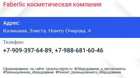 Faberlic, косметическая компания по адресу Калмыкия, Элиста, Номто Очирова, 4 в дальнейшем Организация, размещена в следующих категориях: