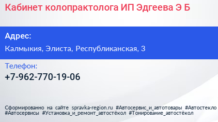Кабинет колопрактолога, ИП Эдгеева Э.Б. по адресу Калмыкия, Элиста, Республиканская, 3 в дальнейшем Организация, размещена в следующих категориях: