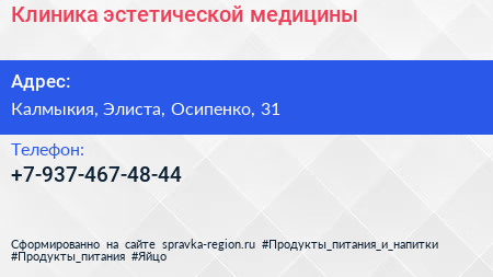 Клиника эстетической медицины по адресу Калмыкия, Элиста, Осипенко, 31 в дальнейшем Организация, размещена в следующих категориях: