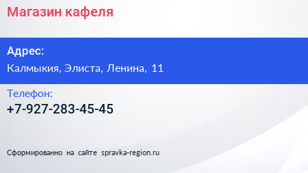 Магазин кафеля по адресу Калмыкия, Элиста, Ленина, 11 в дальнейшем Организация, размещена в следующих категориях: