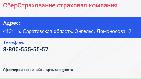 СберСтрахование, страховая компания по адресу 413116, Саратовская область, Энгельс, Ломоносова, 21 в дальнейшем Организация, размещена в следующих категориях: