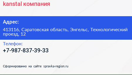 kanstal, компания по адресу 413116, Саратовская область, Энгельс, Технологический проезд, 12 в дальнейшем Организация, размещена в следующих категориях: