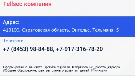 Tellsec, компания по адресу 413100, Саратовская область, Энгельс, Тельмана, 5 в дальнейшем Организация, размещена в следующих категориях: