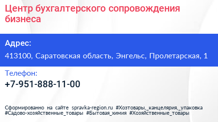 Центр бухгалтерского сопровождения бизнеса по адресу 413100, Саратовская область, Энгельс, Пролетарская, 1 в дальнейшем Организация, размещена в следующих категориях: