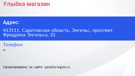 Улыбка, магазин по адресу 413111, Саратовская область, Энгельс, проспект Фридриха Энгельса, 31 в дальнейшем Организация, размещена в следующих категориях: