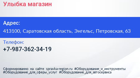 Улыбка, магазин по адресу 413100, Саратовская область, Энгельс, Петровская, 63 в дальнейшем Организация, размещена в следующих категориях: