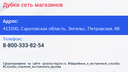 Дубки, сеть магазинов по адресу 413100, Саратовская область, Энгельс, Петровская, 88 в дальнейшем Организация, размещена в следующих категориях: