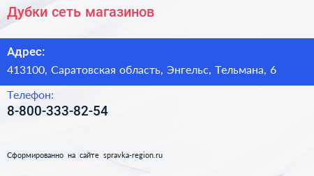Дубки, сеть магазинов по адресу 413100, Саратовская область, Энгельс, Тельмана, 6 в дальнейшем Организация, размещена в следующих категориях:
