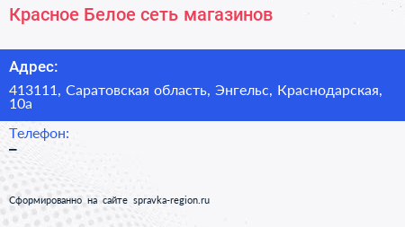 Красное & Белое, сеть магазинов по адресу 413111, Саратовская область, Энгельс, Краснодарская, 10а в дальнейшем Организация, размещена в следующих категориях: