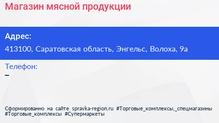 Магазин мясной продукции по адресу 413100, Саратовская область, Энгельс, Волоха, 9а в дальнейшем Организация, размещена в следующих категориях: