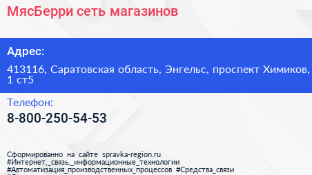 МясБерри, сеть магазинов по адресу 413116, Саратовская область, Энгельс, проспект Химиков, 1 ст5 в дальнейшем Организация, размещена в следующих категориях: