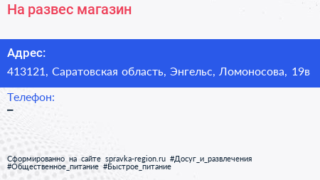 На развес, магазин по адресу 413121, Саратовская область, Энгельс, Ломоносова, 19в в дальнейшем Организация, размещена в следующих категориях: