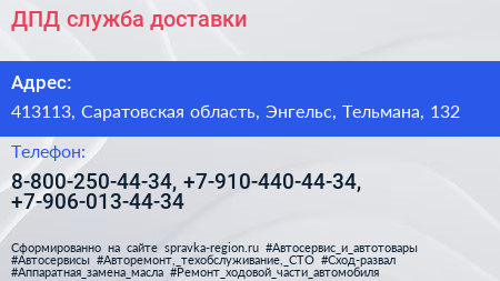 ДПД, служба доставки по адресу 413113, Саратовская область, Энгельс, Тельмана, 132 в дальнейшем Организация, размещена в следующих категориях: