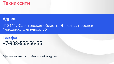 Техниксити по адресу 413111, Саратовская область, Энгельс, проспект Фридриха Энгельса, 35 в дальнейшем Организация, размещена в следующих категориях:
