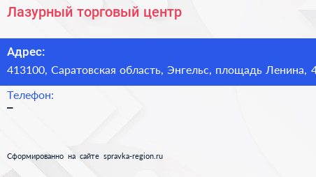 Лазурный, торговый центр по адресу 413100, Саратовская область, Энгельс, площадь Ленина, 4 в дальнейшем Организация, размещена в следующих категориях: