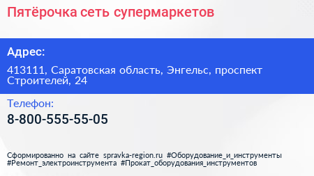 Пятёрочка, сеть супермаркетов по адресу 413111, Саратовская область, Энгельс, проспект Строителей, 24 в дальнейшем Организация, размещена в следующих категориях: