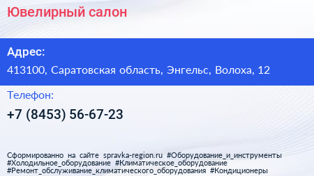 Ювелирный салон по адресу 413100, Саратовская область, Энгельс, Волоха, 12 в дальнейшем Организация, размещена в следующих категориях: