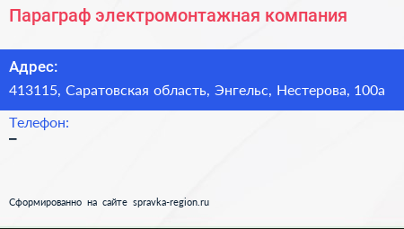 Параграф, электромонтажная компания по адресу 413115, Саратовская область, Энгельс, Нестерова, 100а в дальнейшем Организация, размещена в следующих категориях: