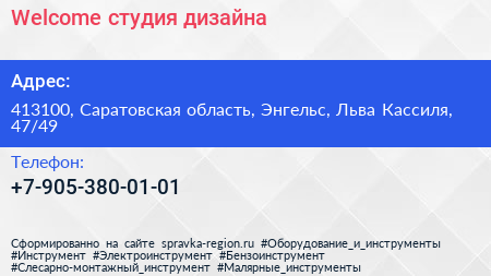 Welcome, студия дизайна по адресу 413100, Саратовская область, Энгельс, Льва Кассиля, 47/49 в дальнейшем Организация, размещена в следующих категориях: