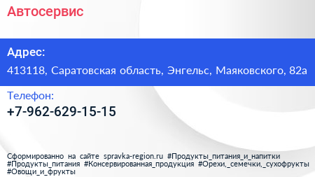Автосервис по адресу 413118, Саратовская область, Энгельс, Маяковского, 82а в дальнейшем Организация, размещена в следующих категориях: