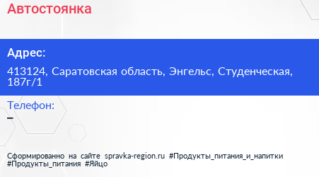 Автостоянка по адресу 413124, Саратовская область, Энгельс, Студенческая, 187г/1 в дальнейшем Организация, размещена в следующих категориях: