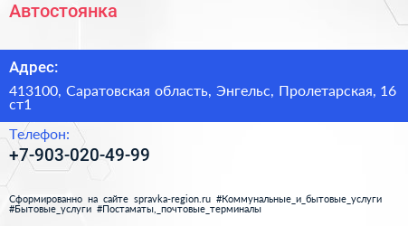 Автостоянка по адресу 413100, Саратовская область, Энгельс, Пролетарская, 16 ст1 в дальнейшем Организация, размещена в следующих категориях: