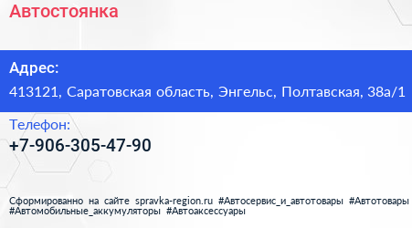 Автостоянка по адресу 413121, Саратовская область, Энгельс, Полтавская, 38а/1 в дальнейшем Организация, размещена в следующих категориях: