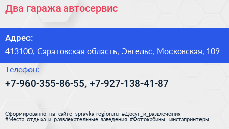 Два гаража, автосервис по адресу 413100, Саратовская область, Энгельс, Московская, 109 в дальнейшем Организация, размещена в следующих категориях: