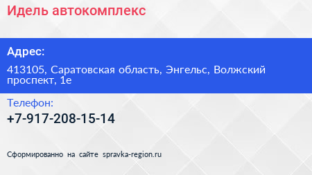 Идель, автокомплекс по адресу 413105, Саратовская область, Энгельс, Волжский проспект, 1е в дальнейшем Организация, размещена в следующих категориях: