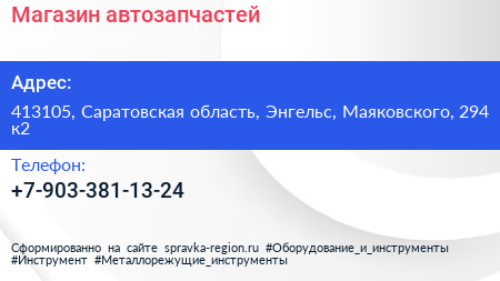 Магазин автозапчастей по адресу 413105, Саратовская область, Энгельс, Маяковского, 294 к2 в дальнейшем Организация, размещена в следующих категориях: