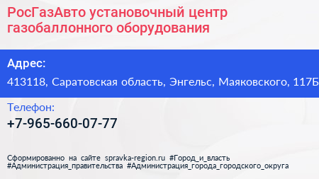 РосГазАвто, установочный центр газобаллонного оборудования по адресу 413118, Саратовская область, Энгельс, Маяковского, 117Б в дальнейшем Организация, размещена в следующих категориях:
