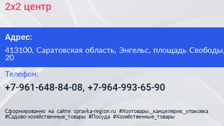 2х2, центр по адресу 413100, Саратовская область, Энгельс, площадь Свободы, 20 в дальнейшем Организация, размещена в следующих категориях: