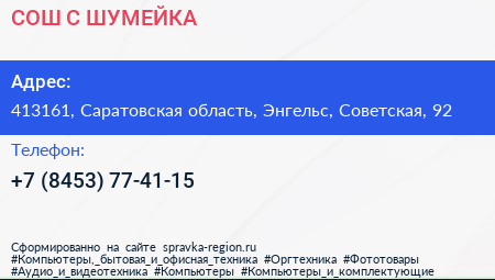 СОШ С. ШУМЕЙКА по адресу 413161, Саратовская область, Энгельс, Советская, 92 в дальнейшем Организация, размещена в следующих категориях: