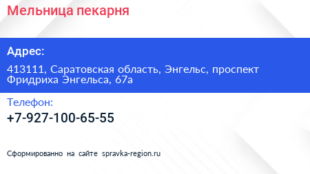 Мельница, пекарня по адресу 413111, Саратовская область, Энгельс, проспект Фридриха Энгельса, 67а в дальнейшем Организация, размещена в следующих категориях: