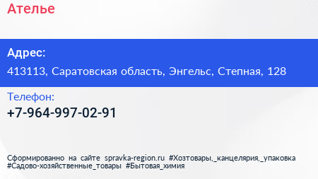 Ателье по адресу 413113, Саратовская область, Энгельс, Степная, 128 в дальнейшем Организация, размещена в следующих категориях: