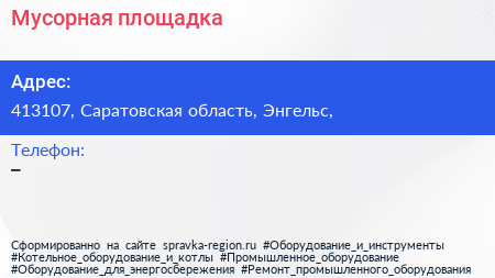 Мусорная площадка по адресу 413107, Саратовская область, Энгельс, в дальнейшем Организация, размещена в следующих категориях: