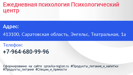 Ежедневная психология, Психологический центр по адресу 413100, Саратовская область, Энгельс, Театральная, 1а в дальнейшем Организация, размещена в следующих категориях: