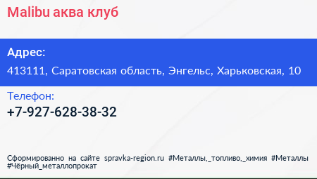Malibu, аква-клуб по адресу 413111, Саратовская область, Энгельс, Харьковская, 10 в дальнейшем Организация, размещена в следующих категориях: