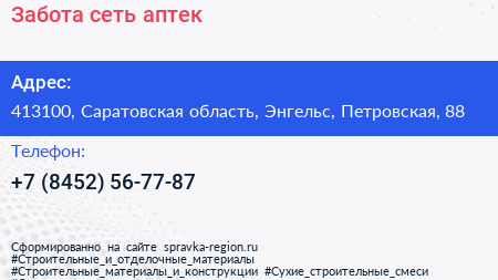 Забота, сеть аптек по адресу 413100, Саратовская область, Энгельс, Петровская, 88 в дальнейшем Организация, размещена в следующих категориях: