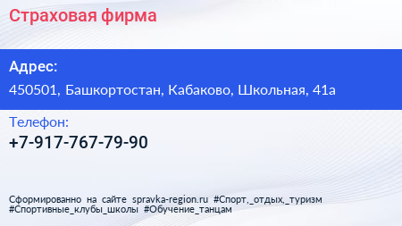 Страховая фирма по адресу 450501, Башкортостан, Кабаково, Школьная, 41а в дальнейшем Организация, размещена в следующих категориях: