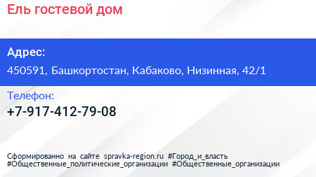 Ель, гостевой дом по адресу 450591, Башкортостан, Кабаково, Низинная, 42/1 в дальнейшем Организация, размещена в следующих категориях: