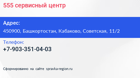 555, сервисный центр по адресу 450900, Башкортостан, Кабаково, Советская, 11/2 в дальнейшем Организация, размещена в следующих категориях: